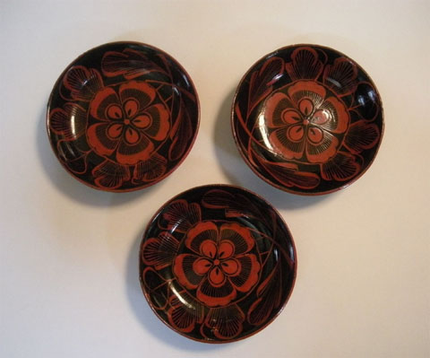 コシヅカハムの近所に、骨董屋ひよこ堂があるということも、気づいたのがここ最近の話。エイヤッとお店に入ってみました。骨董屋に入るのは、本当にひさしぶり。古いモノたちが醸し出す、独特の懐かしい匂いにホッと癒されつつ、店内を眺めると、使い勝手の良さそうな日用品や家具がメインに並んでいて、陶器や漆のモノなどは染付や色絵の美しいモノが並んでいました。なんとなく手にとったのが、400円の貝殻のブローチ。つけようかなって思いまして。懐かしい感じがして、可愛くありませんか? 小さな桐箱に入っていて、ラベルには"SHELL FLOWER"の文字が。ひと昔前は、貝殻でできたお人形やアクセサリーって、観光地のお土産物として見かけたものですが、最近は貝殻製品って見なくなりましたね。そして、根来塗の小皿(全長9センチ)を3枚買うことにしました。お正月用にヨイかなと思って。色合いも素朴で私好み。お値段も1枚700円で、ニコニコとつれて帰りました。