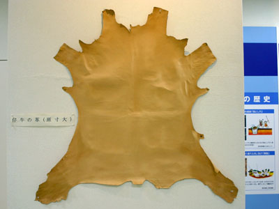 最後は情報館で屠場の歴史や差別についての展示を見た。解体された牛の皮は牛革となるがその実物展示や、枝肉の模型もあった。先に撮影できなかったところは、こういうのがズラリと吊るされているのだと想像いただきたい。