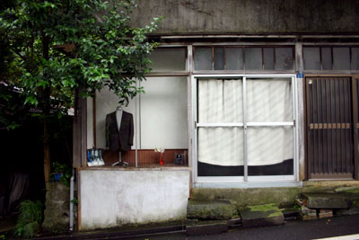 ショーウインドにはスーツが掲げられており、嘗てはテーラーだったのだろうか。その隣は工事フェンスに囲まれた下見板張りの2F建て木造建築で、ちょうど来客があったところで家主が出てくるところに出くわした。