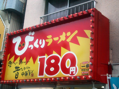 で、300円台でエライと思っていたら、今度は180円という恐ろしいチェーン系があることを知った。最初に聞いたのは関西でだ。梅田のそばに「阪急東通商店街」というナイスなスポットがある。基本は風俗と飲食店の通りで、異様な湿気の高さと人の多さで、弱っているときに訪れるとじんましんができそうな場所なのだが、なぜか巨大な「まんだらけ」と古本屋、マニアックなエロビデオ屋などがあるため、けっこう立ち寄ってしまうのだった。ある夕方、まんだらけで帰りの新幹線で読む谷口ジローのマンガを買い、その紙袋を抱えつつ、通りを歩いていると通りの横に180円ラーメンという看板がみえた。前述のとおり、あまり長くこの場所にいたくはなかったのだが、それでも180円の魔力は結構強く、ふらふらとその店「ラーメン一番」に吸い込まれていった。