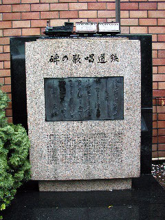 この歌の歌碑は、冒頭の「汽笛一声新橋を…」にちなんで、JR新橋駅前(汐留口)に建てられています。しかし、この歌が出来た当時の新橋駅(新橋停車場)は、今の汐留地区にありました。旧新橋駅は、大正3年に名前を「汐留駅」と改められて貨物駅となり、同時に「烏森駅」が改称されて、今の新橋駅となったのです。