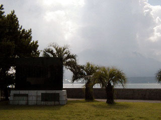さて、『我は海の子』の歌碑ですが、錦江湾に臨む鹿児島市の祇園之洲公園の南端に建てられています。碑の背後には桜島が雄大な姿を見せており、碑を眺めていると気宇壮大になってきます。近くには、ザビエル上陸記念碑や薩英戦争の砲台跡などもありますので、ご興味のある方は是非こちらもご覧になって下さい。