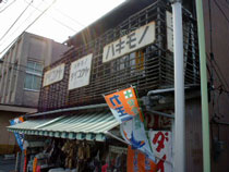 ベランダが格子状になっていて沖縄のベランダを髣髴とさせる。店頭、店内中、貼り紙だらけの店だ。昭和5年開業。店主に聞くと「若い人がゲタのことを知らないから貼り紙でお知らせしています」とのこと。「盆おどり用ぞうり」「足型カリプソ」などに笑った。カリプソとは業界用語で足の型に出来た草履のこと。「草履はかかとから5cm出して、ぱたんぱたんと調子を取って歩くんです」と教えてくれる。ここの店内にもヤツガシラが飾ってある。ここの商店街のひとはホントにヤツガシラが大好きだ。