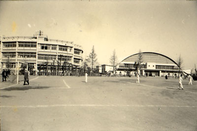 明治期、最初は特別に体育館というものはなかったという。教室間の間仕切りを工夫して体操場や講堂に利用できるよう設計したものがあったくらいだそうだ。明治三八年には「雨天体操場」「雨中体操場」という名前で屋内体操場が学校建築に取り入れられていた記録がある。